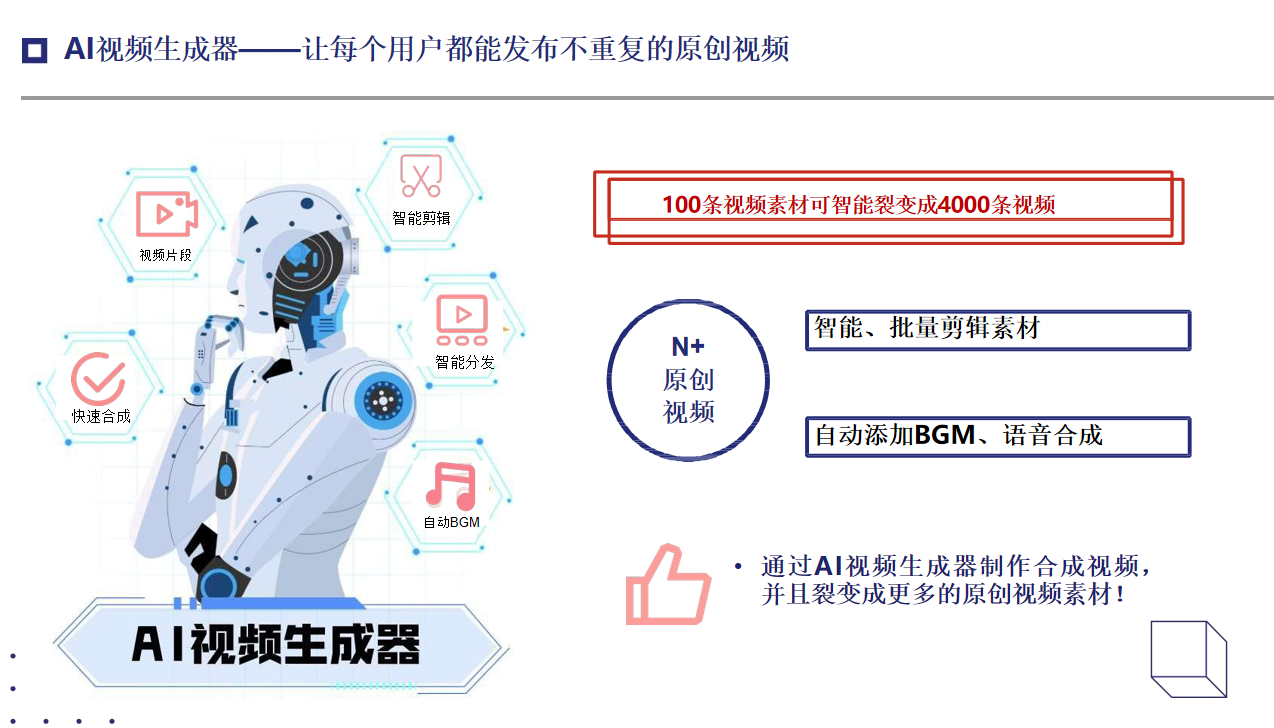 有的人可能会说,这么多人转发,视频一样的话没流量,不一样的话得要花多少时间才行。没错,抖音大力扶持的是原创视频,所以为了避免搬运,拓店客同城爆店码系统自带AI混剪功能。商家上传几个视频、音频、图片等素材后,可以一键批量生成几百几千个原创视频,而且视频数量低于一定数后,后台会再次自动生成,避免突然没视频可用的情况。