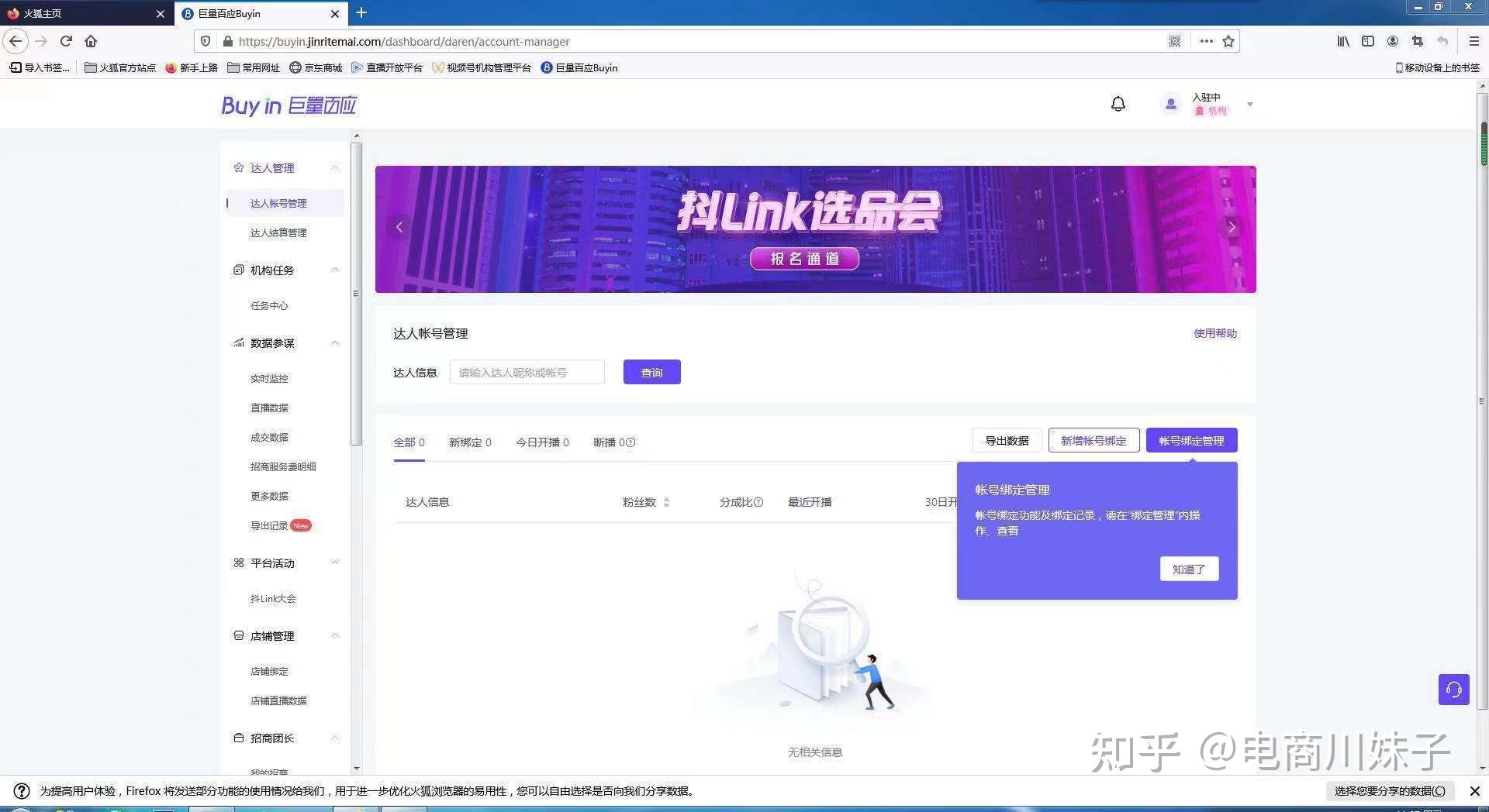 知乎营销平台当你发起了“招商团长”活动,所有开通了精选联盟的抖店商家都可以通过“商家后台-营销中心-精选联盟”看到你的活动详情,并将自己符合要求的商品提报给你,团长可以把这些商品对接给匹配的达人进行售卖,并从中收取到服务费。