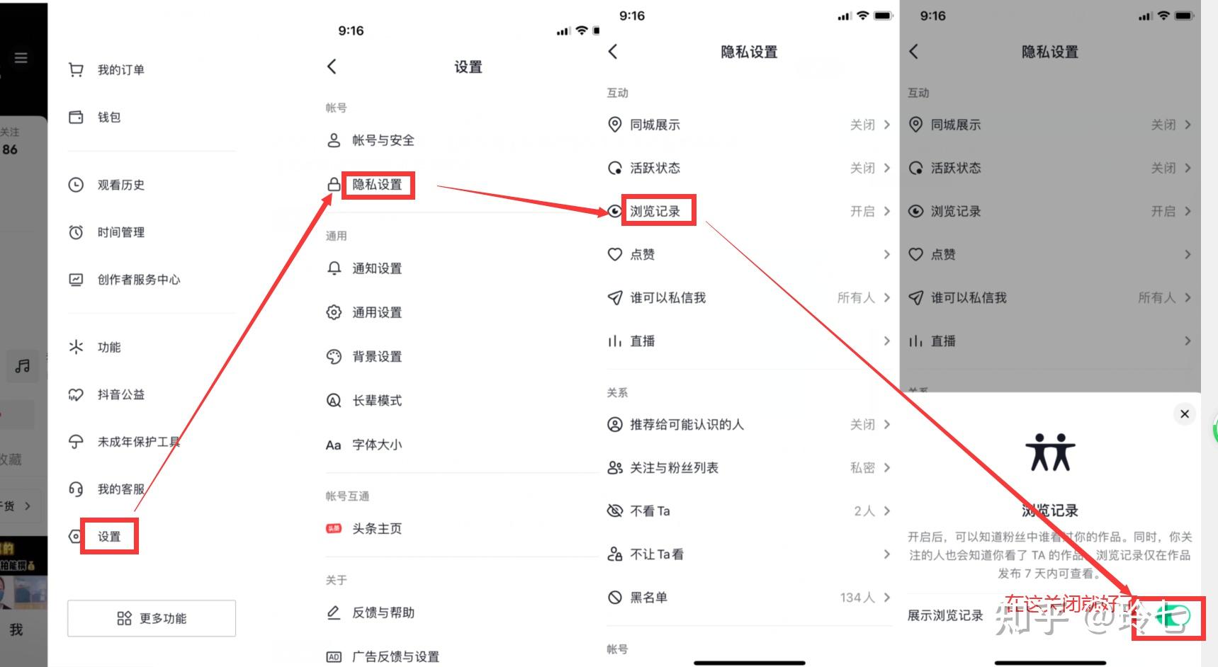 首先打开抖音主页右上角三条杠,点击设置,选择隐私设置,在浏览记录这里选择关闭就好了~