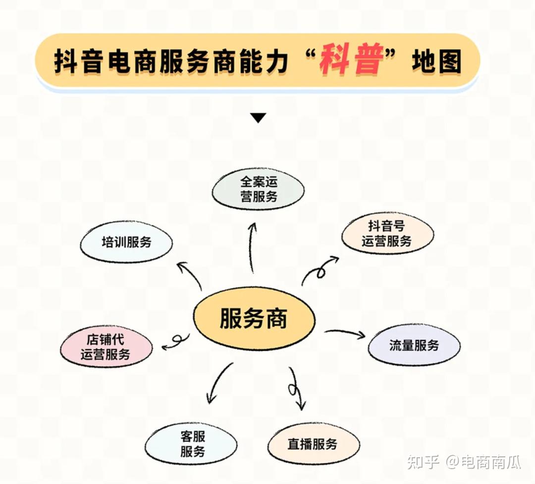 知乎营销平台品牌在入局抖音电商初期,很容易因对行业不够了解而陷入专业陷阱,此时,服务商需要具备全流程的服务能力,来帮助品牌更高效的布局阵地。抖音电商总结出「6+1」服务能力,帮助服务商快速找准自身定位。