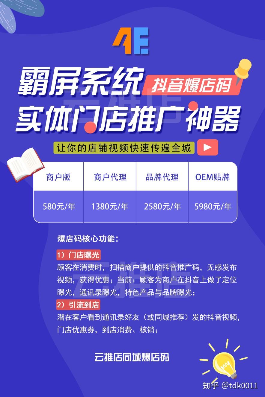 同时,抖音目前日活跃用户就超过6亿人次,想必这也是所有商家都想通过抖音为自己产品或商店做推广。但抖音账号随着抖音平台的不断更新和发展,现在想做出一个坐拥几十万几百万粉丝量的账号是非常难的一件事,首先是短视频剪辑、拍摄、题材、剧本等,最重要的还是时间比较长,而且没有保证。就在19年年底,云推店开始研发爆店码,爆店码主要是针对实体商户的抖音营销推广工具,基础功能是商户借助顾客的抖音号,让顾客成为推广大使。云推店爆店码有自己独立的后台,还有专业的技术团队维护系统正常运作和后续的系统更新。云推店是一家想做好爆店码并且在做好爆店码的一家强有力的公司。