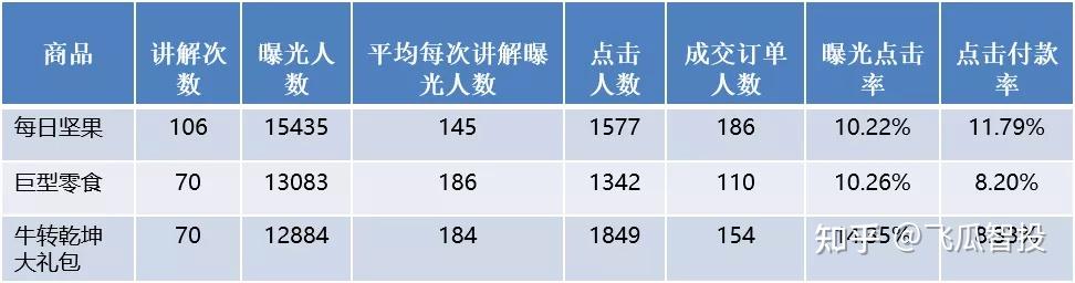 通过对比下面直播间的3款商品的曝光人数和曝光点击率等数据,发现商品3的讲解曝光的效率是更高的,转化效率也是更高的,因此在之后的选品中,建议先考虑商品3。