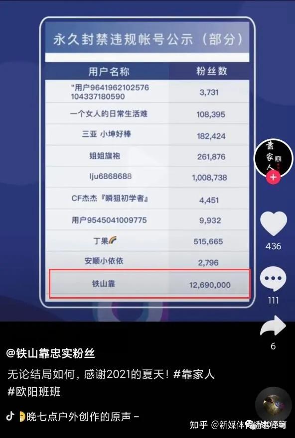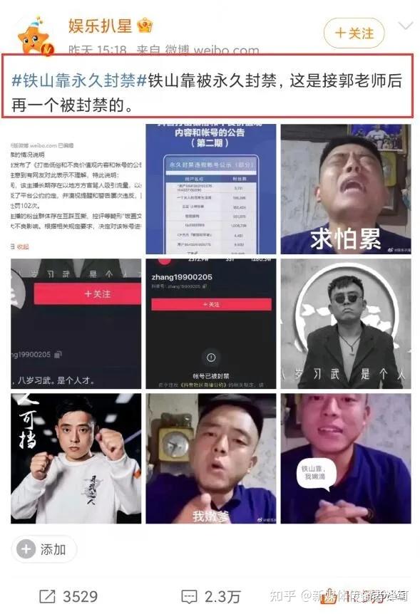 昨日,抖音官方宣布了一则声明,同时公布了一批在“清朗行动”之下,封禁的违规账号,其中铁山靠便是板上钉钉的那一位。