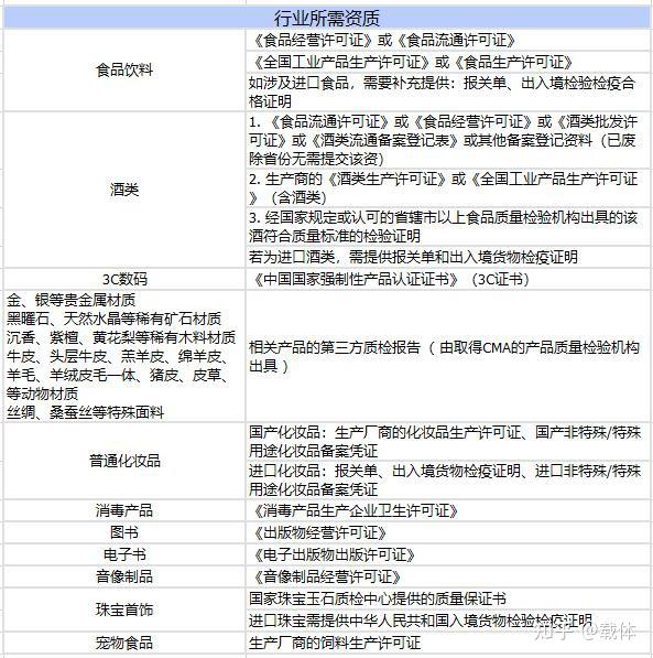 第二,自身经营计划选择行业大类后,选择一级类目时,需要提供相关行业资质,具体参考下表: