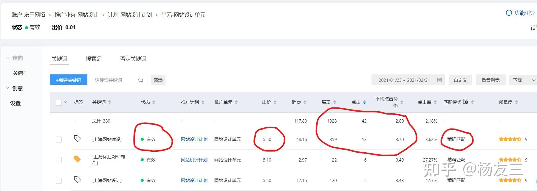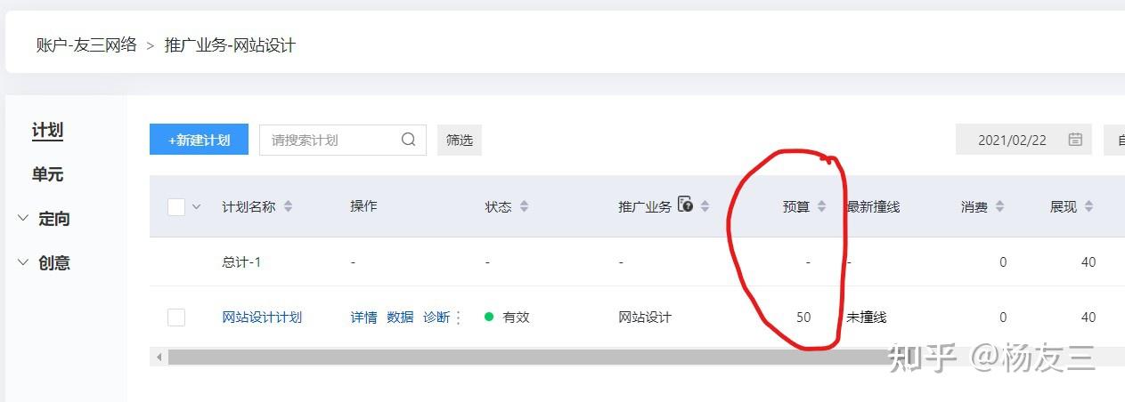 二、设置篇建议自己设置,而不是让百度业务员代劳。我的一个朋友就是让百度业务员代劳,结果在春节7天就花光了5000元推广费,一个电话都没接到。另外,对于预算不多的公司,建议只做“搜索推广”,不做其他类型的推广,例如“信息流推广”,因为只有“搜索推广”才能将客户的需求和公司的业务更好地匹配起来。