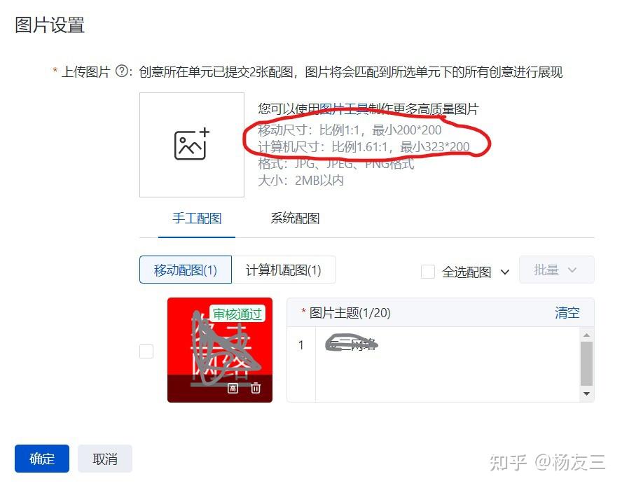 最后,我们需要进行图片设置,要注意移动尺寸:比例1:1,最小200*200;计算机尺寸:比例1.61:1,最小323*200。图片中不能出现网址、未获取的商标等信息。例如,两个字的图片就很难通过,因为这两个字可能是别的公司的注册商标。