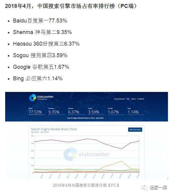 从现在股价来说,看多百度的逻辑很清楚。首先,可见的时间内,百度在搜索市场的地位稳固。根据statcounter数据,百度在国内仍然稳稳的占据7成市场,甭管主动的还是被动的选择,“百度”仍然是搜索的代名词。
