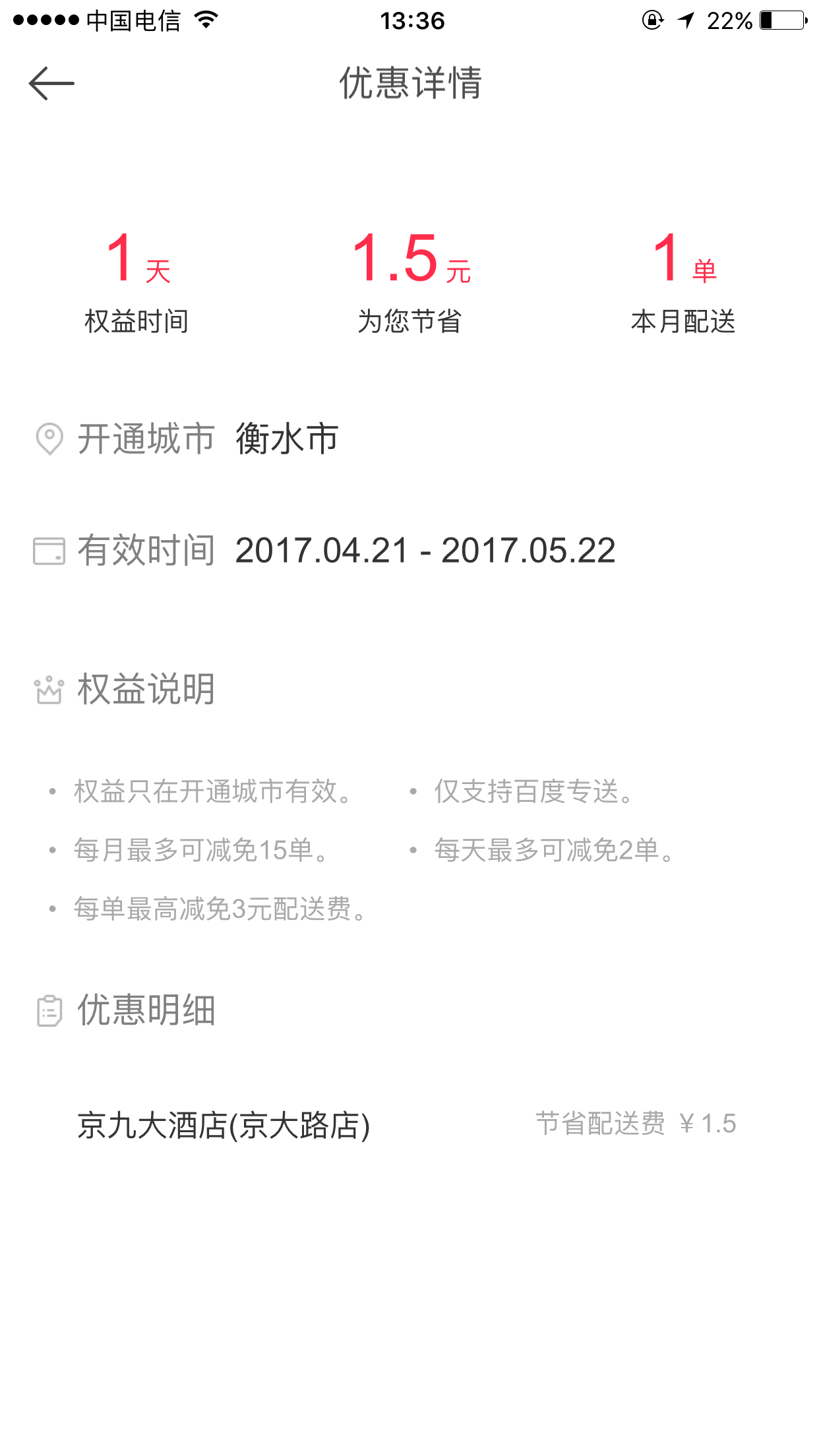 我花20在百度外卖办卡,告诉我手气比别人好,夸赞我后我就能比不办卡多花5元钱,are you kidding me办卡前配送费都是3元,但是办卡后选择不同的商家,减少的配送费是有不同的。这就很玄学了,这就是所谓的百度外卖的黑科技吧。附图