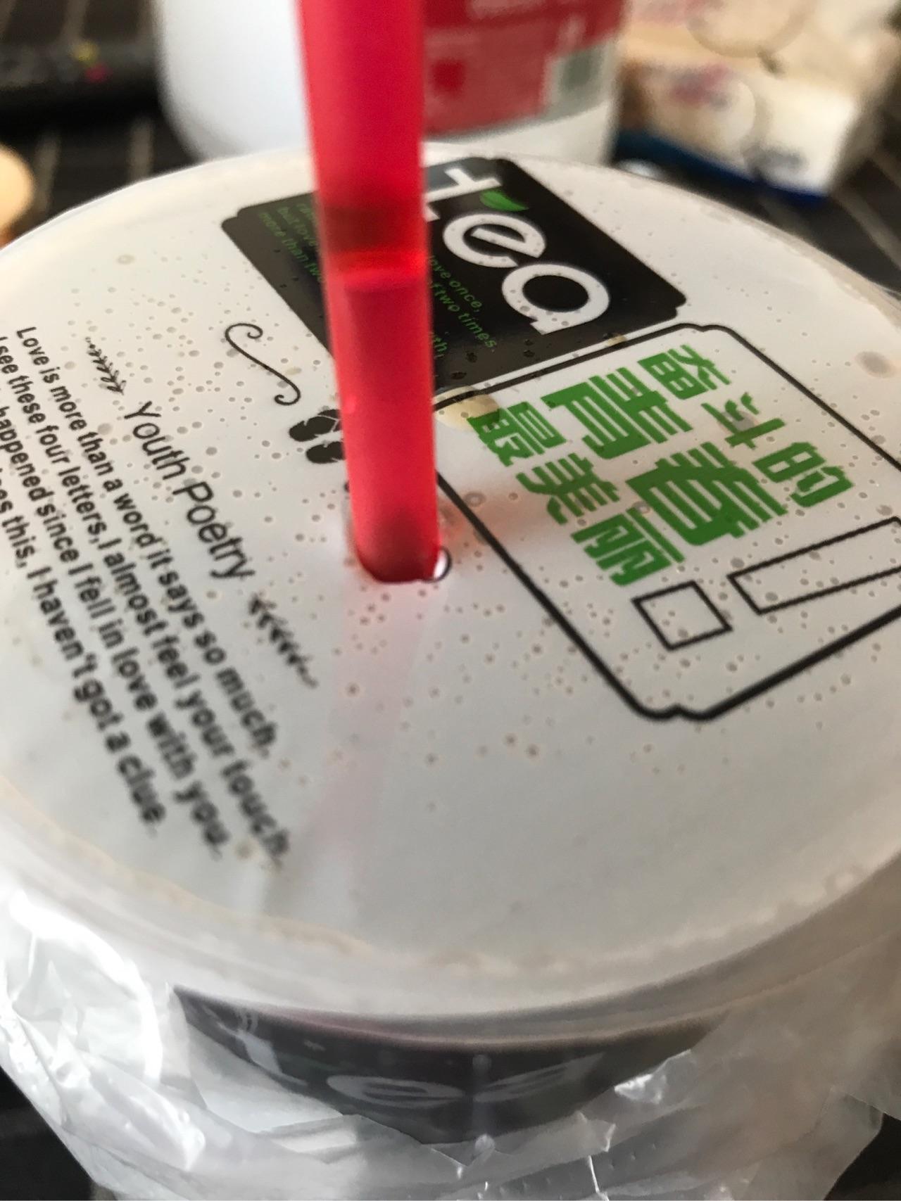 拿了吸管准备戳可乐,今天的可乐也有点诡异,还带了街边奶茶店的那种塑封。