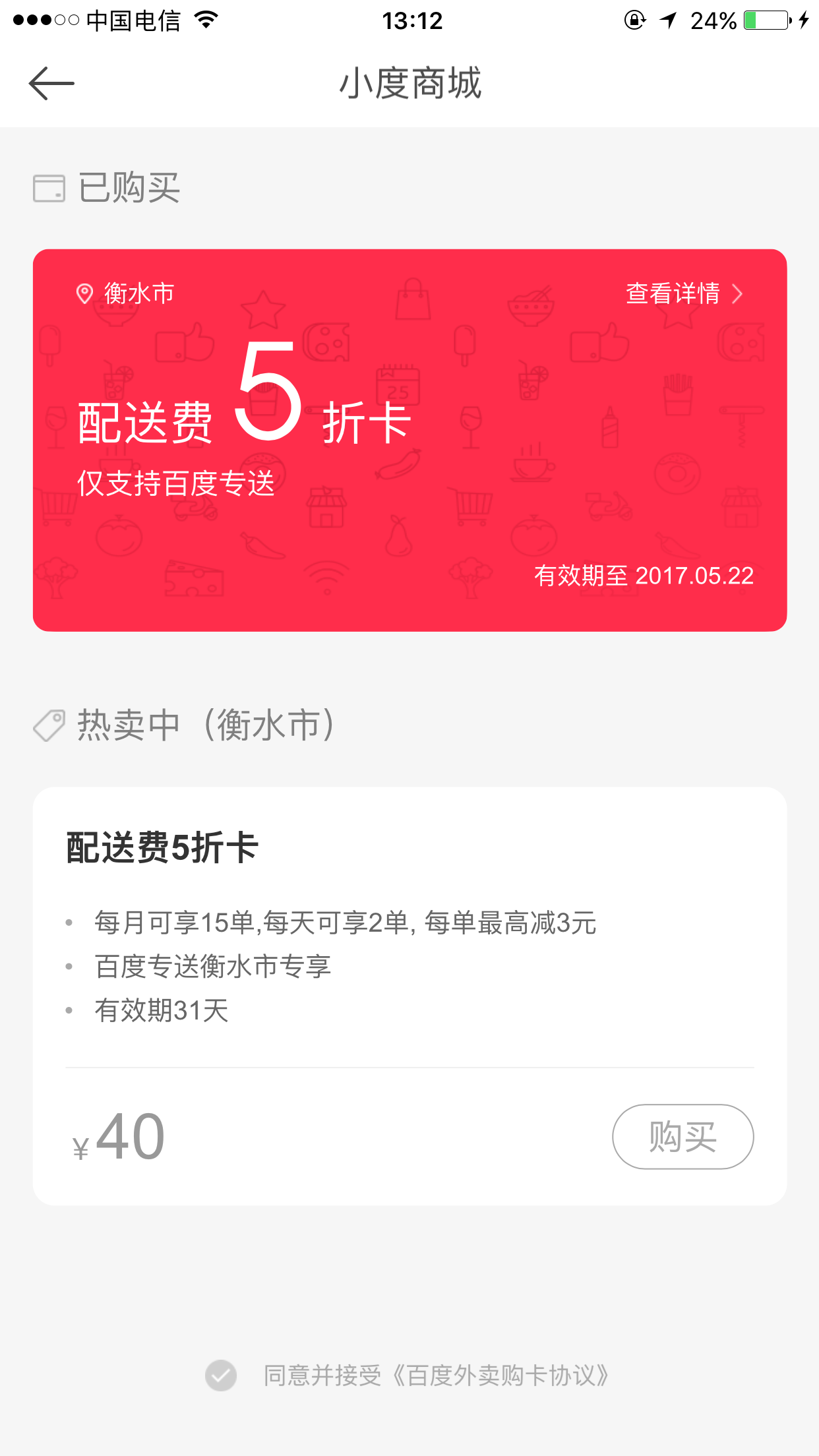 更高减免3元的几率无限趋近于0。这意思是有减1,1.5,3三种情况么,说好的五折卡呢平平淡淡才是真啊(」゜ロ゜)」1月11日中午11点10分点了百度外卖,结果到了预定时间骑士还没来,我主动联系了骑士,骑士说把我的单漏了,送不来了,让我退了吧!此时已经12点半,下午一点就要上班了,故致电百度外卖给个解决方案,对方客服接到电话说知道了,然后没了下文;后面只能楼下买了个盒饭赶紧吃了!第二天继续致电百度外卖,同上仍然说知道了!第三天发邮件给百度外卖的投诉邮箱,石沉大海!当初放弃饿了么选择百度外卖就是因为百度有时效要求,且大部分店都能开票!结果百度自己违反了自己的时效要求,就耍无赖,不处理了,这种公司如何敢再次使用! 20