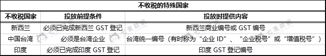 新西兰、中国台湾、印度这三个/地区不需要缴税,但在投放 Search Ads 苹果竞价广告时,具备前提条件,并提供相关商业编号或税号,才能享受广告投放服务。
