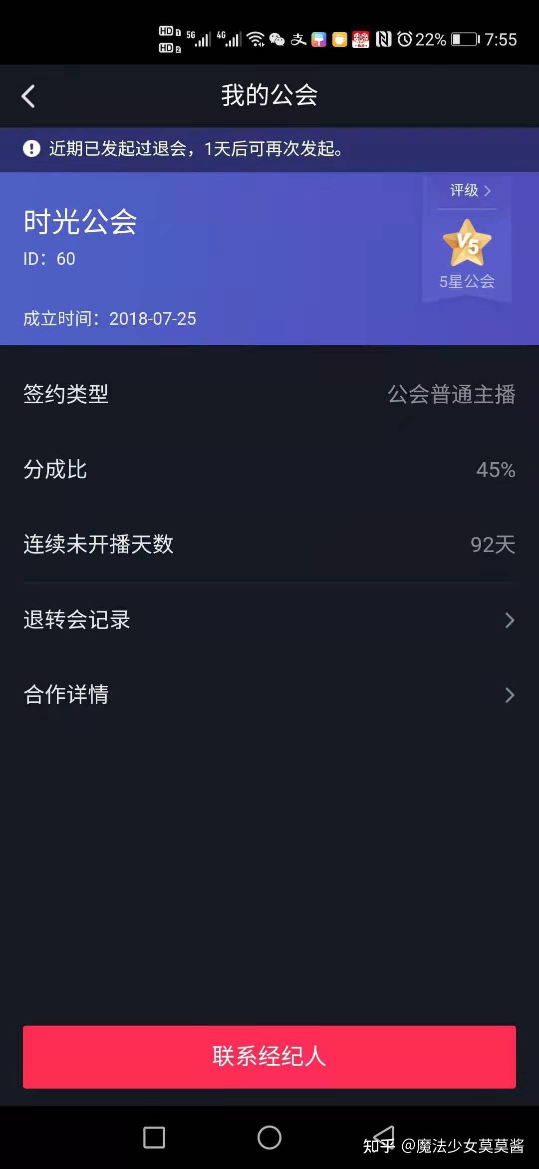 刚看到了你的介绍,时光公会的,我认识的一个主播在等够120天要退会