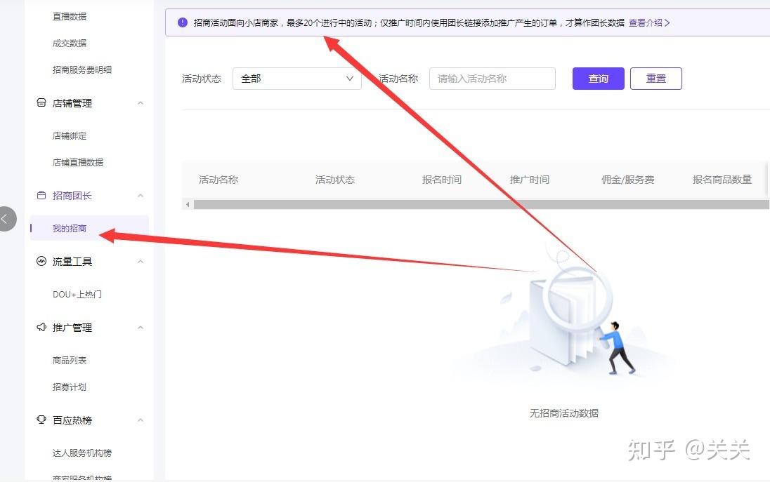 知乎营销平台所有入驻成功的机构服务商都有“招商团长”工具的使用权限,可以在百应后台发起招商团长活动,扮演团长角色,所有开通了精选联盟渠道的抖店商家都可以通过“商家后台-营销中心-精选联盟”查看活动要求,并将抖店里的商品提报至团长活动中,团长可以把招商的商品对接给相关达人进行售卖并收取一定服务费。