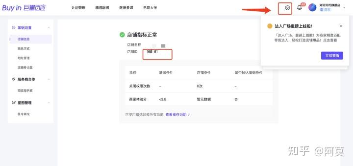 •若选择“指定商家报名”,需要找商家要店铺的短id,短id的获取方式:商家登录百应后台,点击设置标志,展示的店铺id,即为团长招商活动中指定商家报名时需要填写的id知乎营销平台