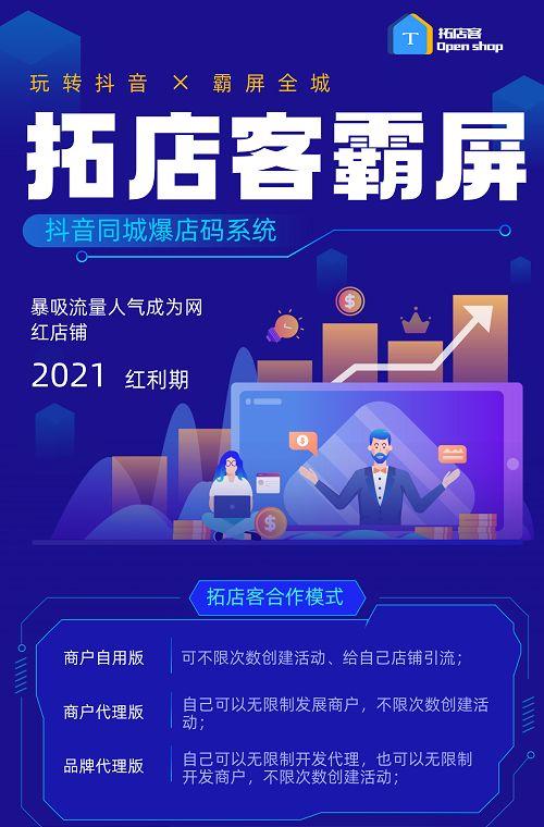 爆店码_同城爆店码_抖音霸屏_爆店码代理_实体店引流系统-拓店客1、商家把编辑好的短视频上传到拓店客后台,创建活动生成爆店码,然后印刷成海报或宣传单页,消费者到店或通过其他方式扫码领券即可转发;
