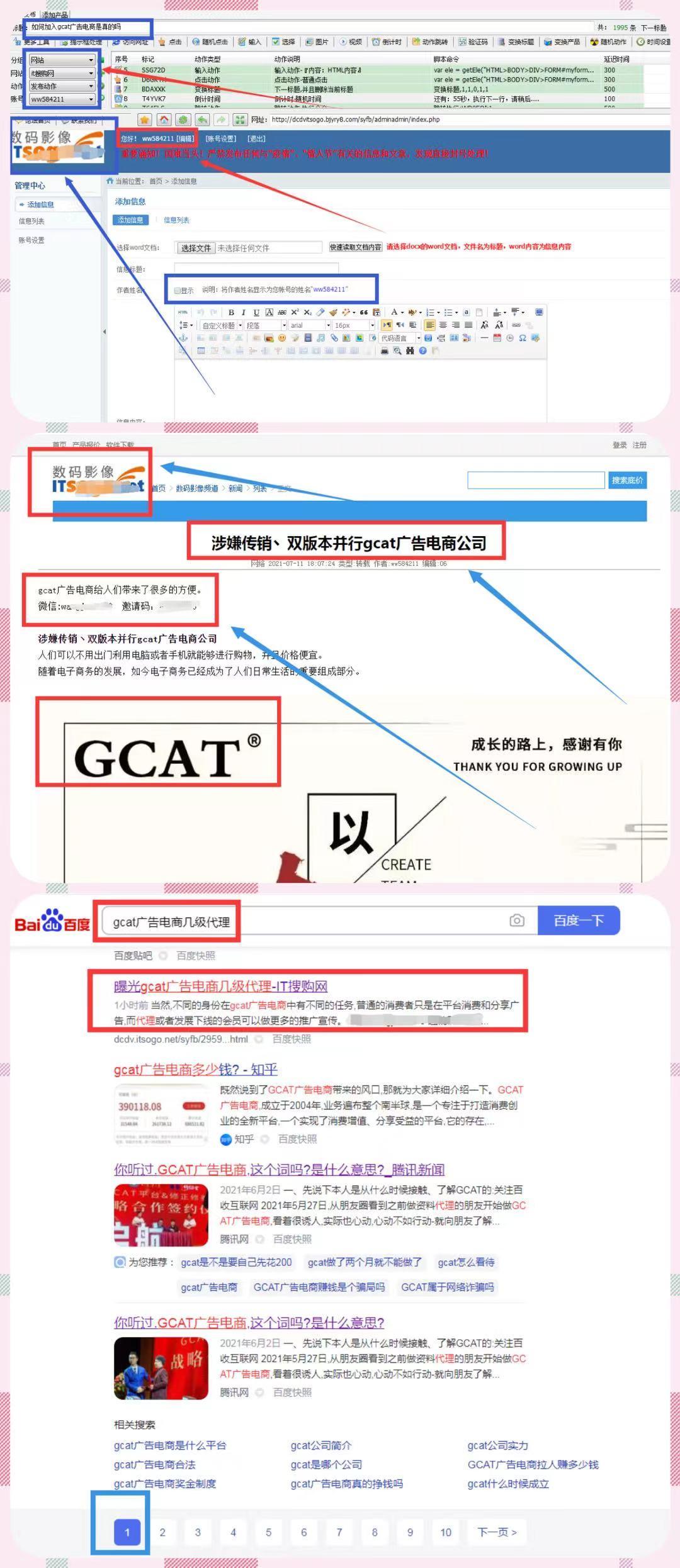 这是一家名为:GCAT的广告电商平台,开发团队是浙江省义乌市楼上楼贸易有限,没有独立的APP软件,只有一个小程序,购物登陆小程序,返现需要登陆另一个网址。