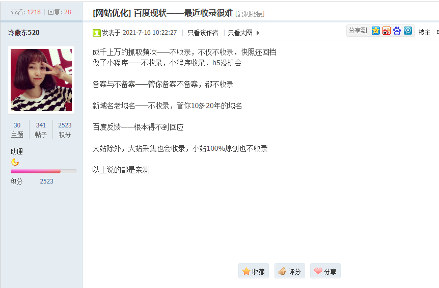 正常,2021年直接搞死一大批站长!从2020年底开始小站基本就不怎么收录了,