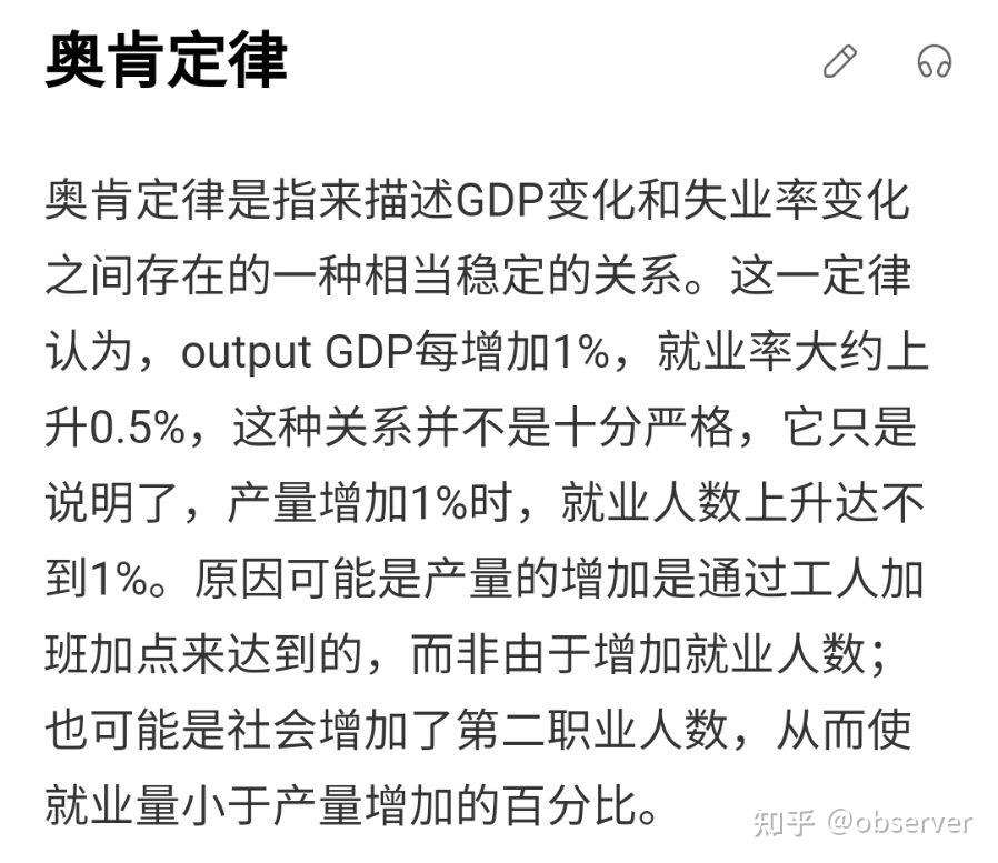 根据奥肯定律,GDP每增加2%,失业率大约下降一个百分点
