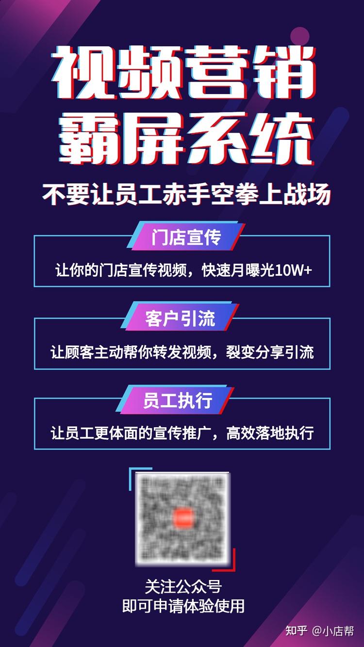 我们经过测试,使用门店视频营销工具,可以让你的门店和产品宣传,快速实现月曝光10W+,关于视频营销系统和使用方法,大家可以通过我们近期分享的文章了解,欢迎留言交流。更多的实体店营销引流工具和策略方法,欢迎关注小店帮公众号,观看1分钟解密视频了解!