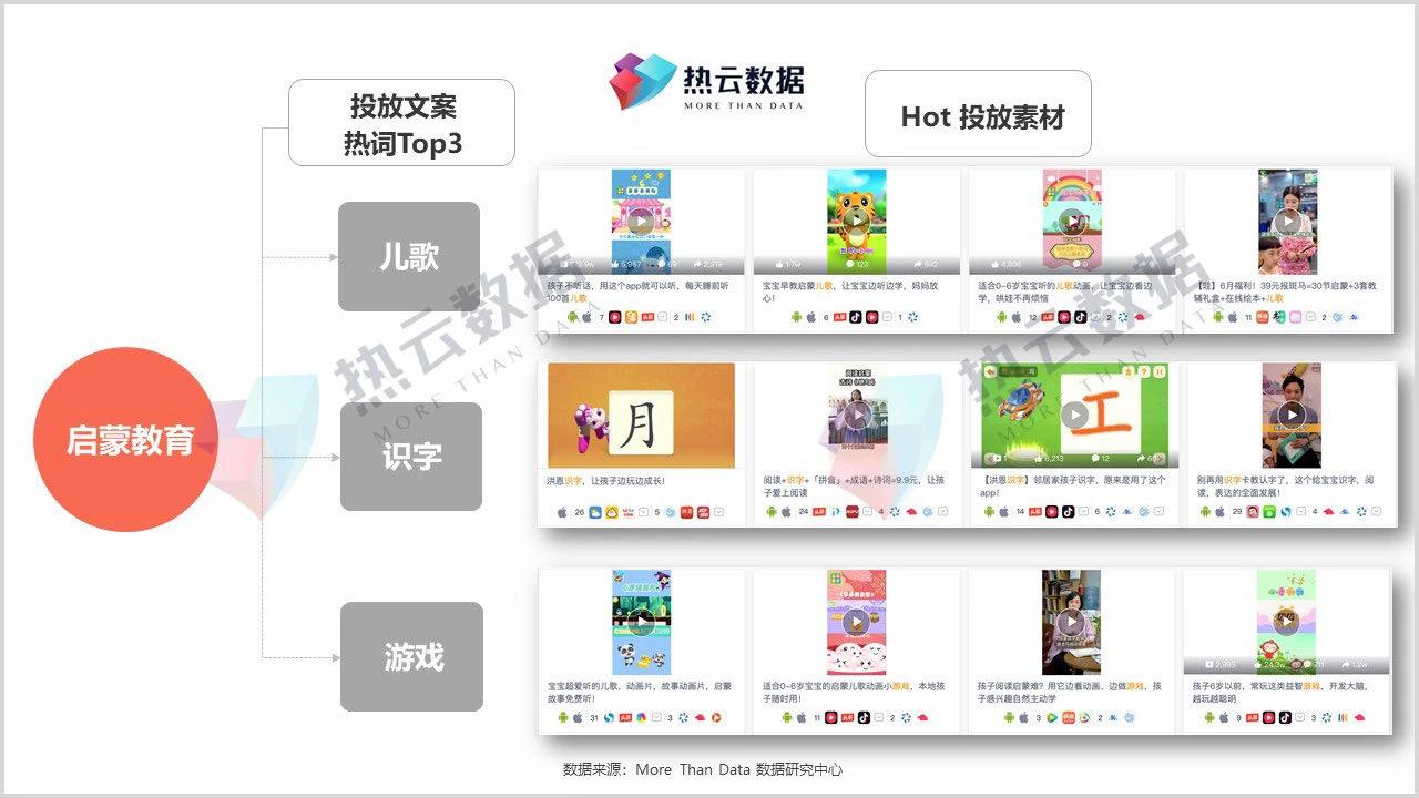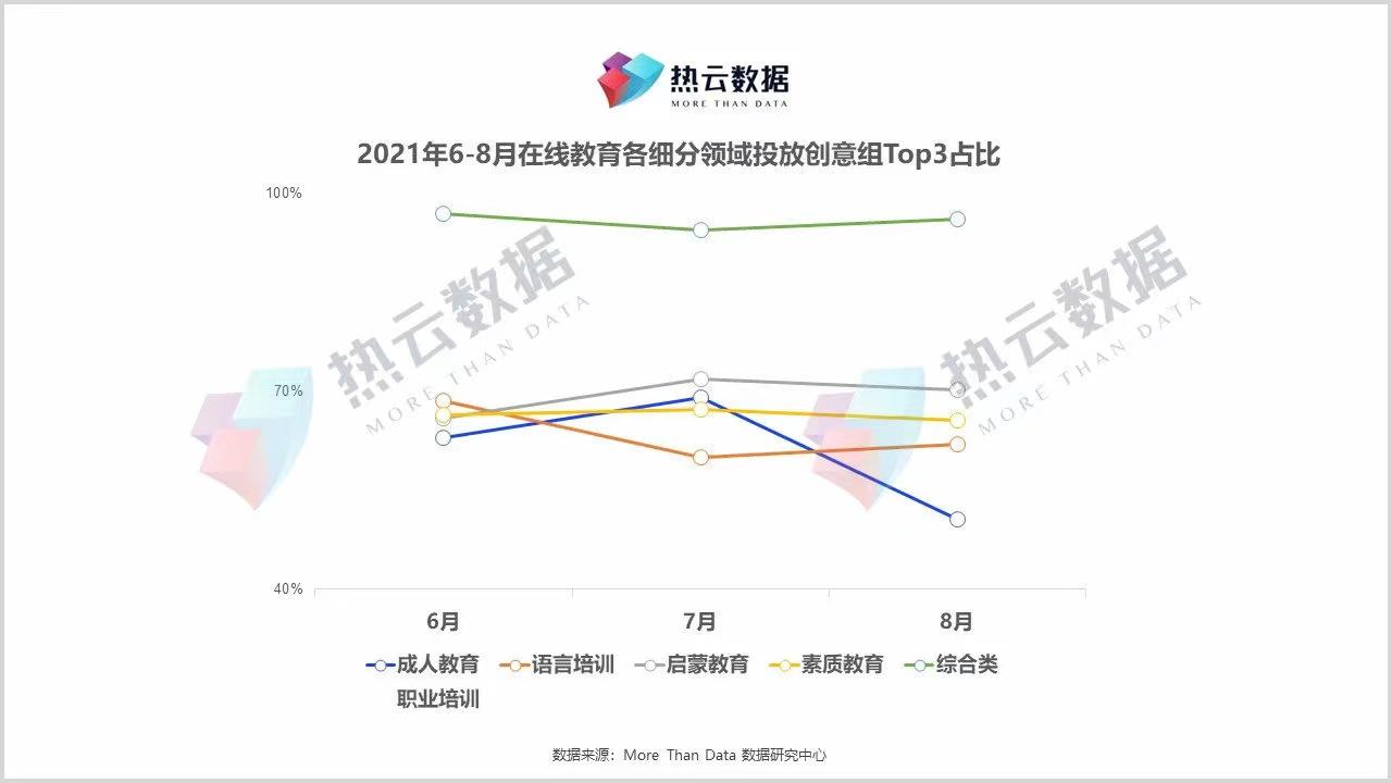 以下为2021年8月在线教育热门细分赛道投放文案热词Top3和Hot投放素材:
