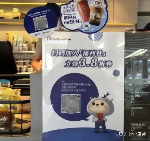 一、瑞幸咖啡如何建立私域流量池?01 门店为企业微信入口门店收银台的展台会展示企业微信二维码,展台显示入群每天会有大量优惠券发放,导购也会引导用户扫码添加企业微信领取优惠券。瑞幸咖啡的人设为首席福利官lucky,用户扫码添加后会自动分配到运营人员的企微号中。