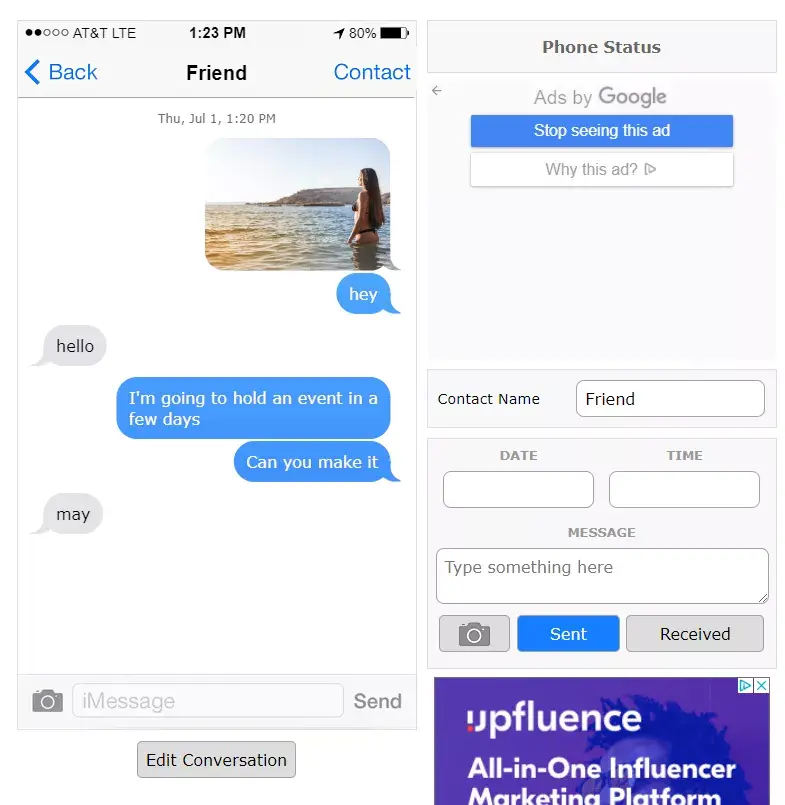 你可能已经在网上看到过一些有趣的 iPhone 聊天屏幕截图,你也可以做到。使用 Fake iPhone Text Generator 这个对话生成工具,在几秒钟内创建一个虚拟的对话,而无需逐字逐句地手动制作图片。你可以使用这类图片展示给你的粉丝,宣布一个即将到来的事件或者通过对话进行创造性的交流。