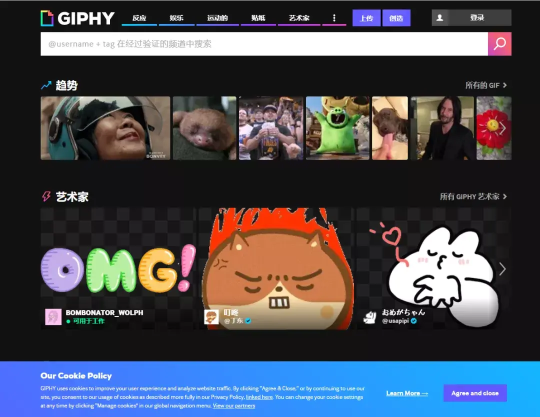 4.GIPHYGIF动图是一种多功能的微内容类型,是吸引受众注意力的好方法。使用 GIPHY,你可以访问现有 GIF 动图库,也可以从 YouTube 视频或你自己拍摄的视频片段中创建自己的 GIF 动图库。它提供了大量的编辑选项,并且你还能够嵌入由 GIPHY 托管的 GIF动图,或者下载源文件上传到其他地方。你可以使用这些 GIF 动图来吸引的观众,解释如何做某事(比如使用网站或应用的教程),或者在 Facebook 评论区或 Twitter 上与人们互动。