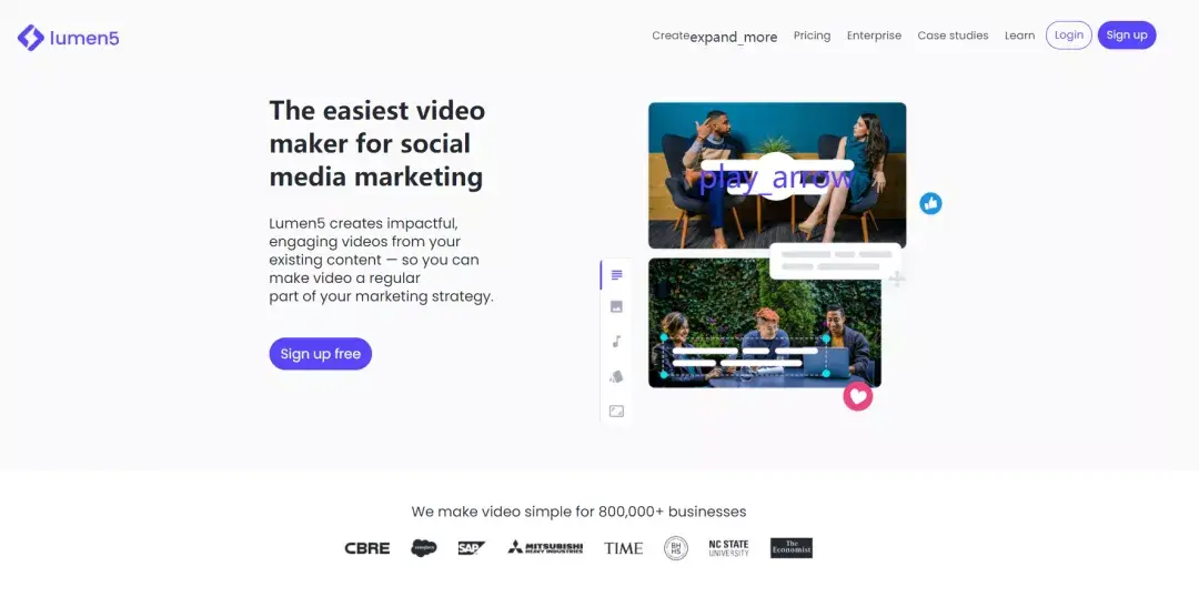 3.Lumen5相比于长文案来说,视频是一个更好的替补方案。你可以将视频本地上传到 Facebook、TikTok、YouTube 或其他平台,以利用跨多个平台的受众。Lumen5 是一个可以轻松创建视频的简便工具。你可以导入现成的博客文章或脚本(或从头开始创作)、从库存照片和音乐库中进行选择、调整文本和播放节奏,然后将视频上传至你的目标平台。