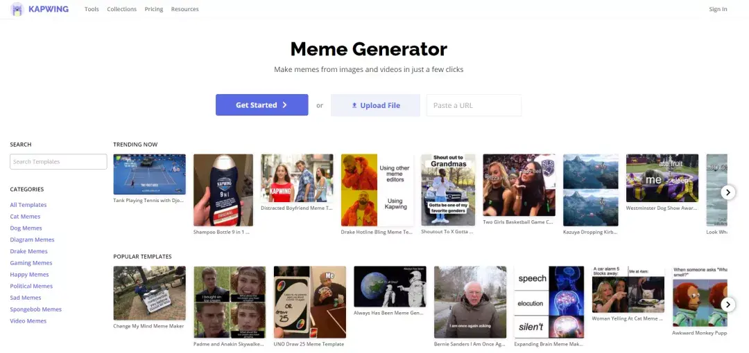 1.Kapwing在当下的互联网文化中,品牌meme(表情包图片)非常容易模仿,并且易于制作。但是并不是所有品牌都适合表情包营销,但如果你的品牌具有幽默元素的话,meme 是与千禧一代受众产生共鸣的一种好方法。重点是,你要找到一个表情包,它要么是经典款,要么是当下更流行的元素,然后根据自己的品牌情况进行相应调整,取悦受众。你可以使用Kapwing这个表情包生成工具制作大多数人都很熟悉的通用表情包。你也可以发挥自己的创意,创作出一个超越原版的表情包。此外,你还可以利用一些通用性非常强的表情包,自行通过 Powerpoint 或 KeyNote 在表情包上添加文字。