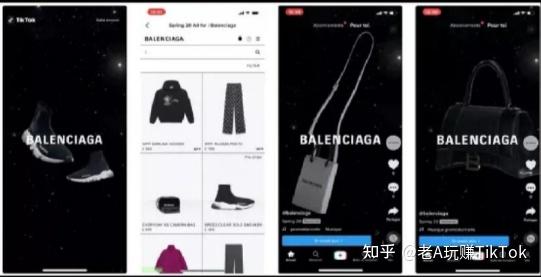 特点(1)当用户使用品牌赞助的贴纸或AR滤镜来制作视频时,无形中就为品牌打了广告。(2)Branded Effect Ads的周期一般为10天,但如果使用的用户很多,也能给广告主带来不错的曝光。2. 优势(1)在先进的智能视频识别技术加持下,选择多种按钮和贴纸样式制作视频,使互动变得更有趣。(2)可与挑战赛等多种广告产品组合,提升用户参与,助力完成营销目标。(五)TopView Ads(超级首位)TopView广告是基于In-feed广告和Branded Takeover广告结合变化后的广告。1. 广告特点(1)时长:最长可达60s(2)位置:app打开5s后出现(3)展示:竖立、满屏(4)方式:自动播放和声音全屏视频(5)视频下方支持添加call-to-action,可添加指向内部或外部页面的链接2. 广告案例以下是Balenciaga使用TopView广告为他们的商店页面增加流量的案例。精美全屏视频,清晰简洁的品牌logo,再配合call-to-action按钮,成功获得超过2300万展示量,点击率约为18%。