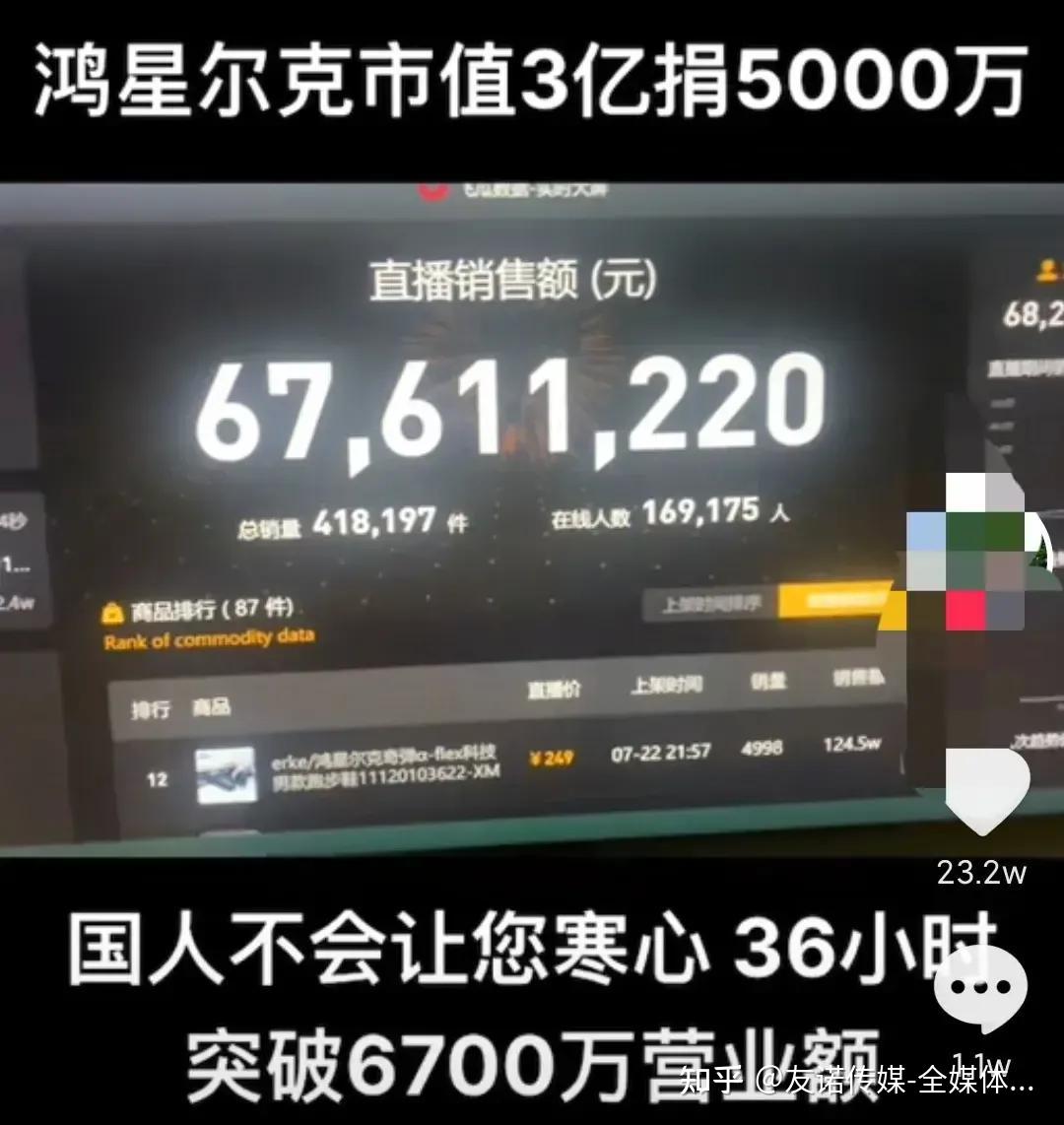 通过这次事件,鸿星尔克36小时直播销售6760万,预计净利润超过1800万,可以说是完美逆袭。