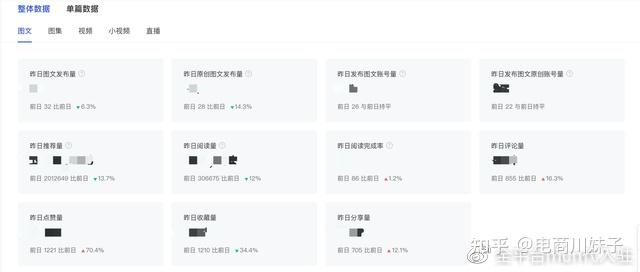内容分析支持根据内容类型查看,包括“图文”、“图集”、“视频”、“小视频”和直播。并且支持查看单篇内容的数据,支持数据导出。