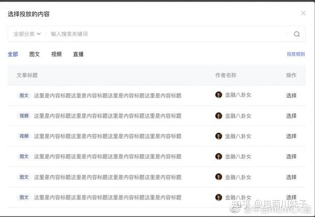①在流量池界面,点击“分配流量”,在新页面选择推荐的内容进行流量投放。 父账号也可输入作者名称和内容标题进行搜索。