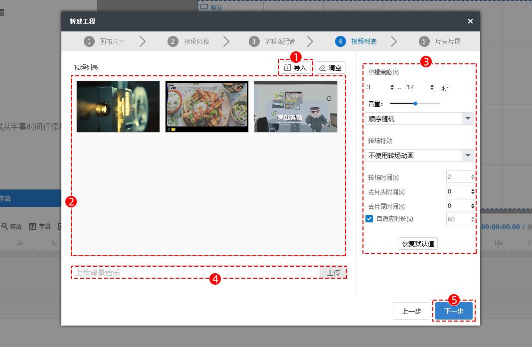 导入多段视频素材,设定剪辑策略,由工具来自动进行剪辑,可以自己添加录音配音、添加素材、音乐等。