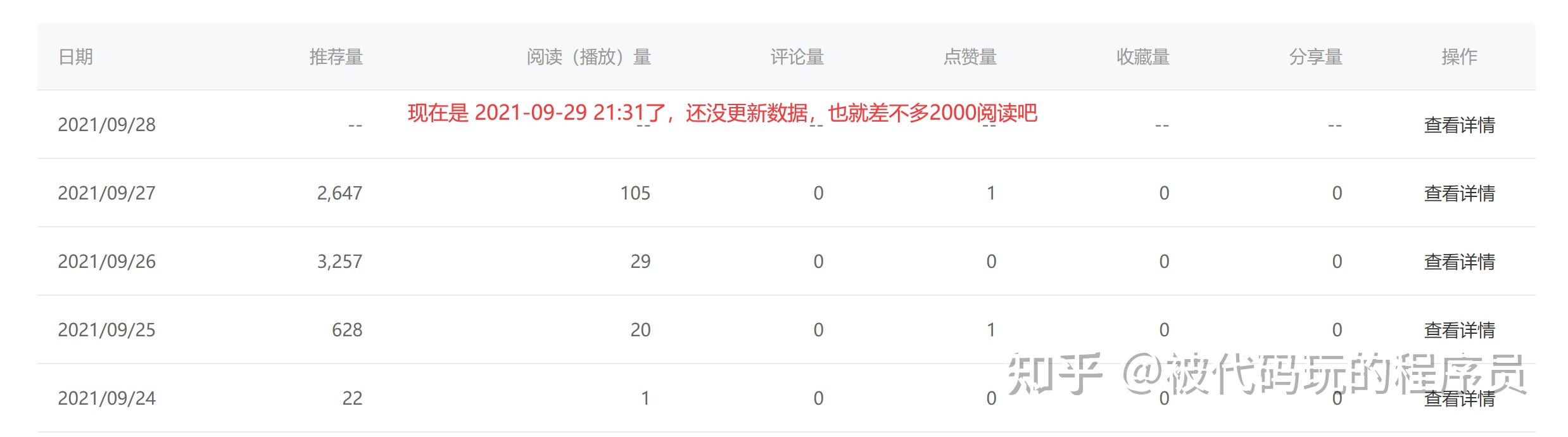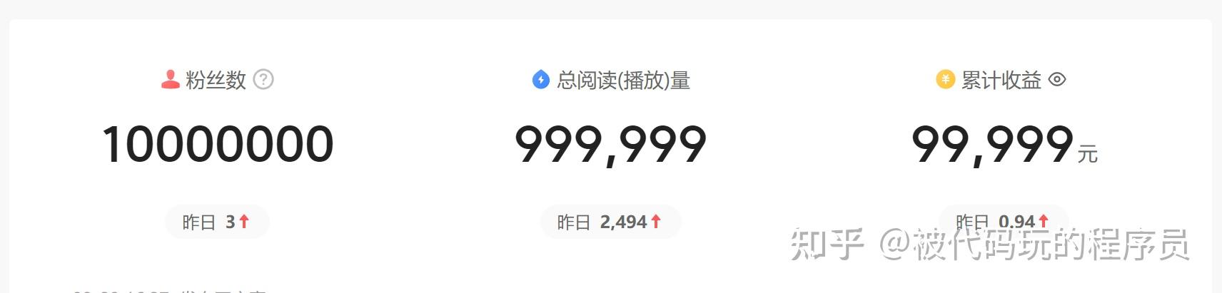 看着知乎上面玩自媒体的动不动都是日入几百上千的,实在让人心动,于是,在今年9月24号重新开始发文,今天是第5天了,为了融入自媒体日入几百上千这个群体,通过自己的技术终于实现了收入破万。