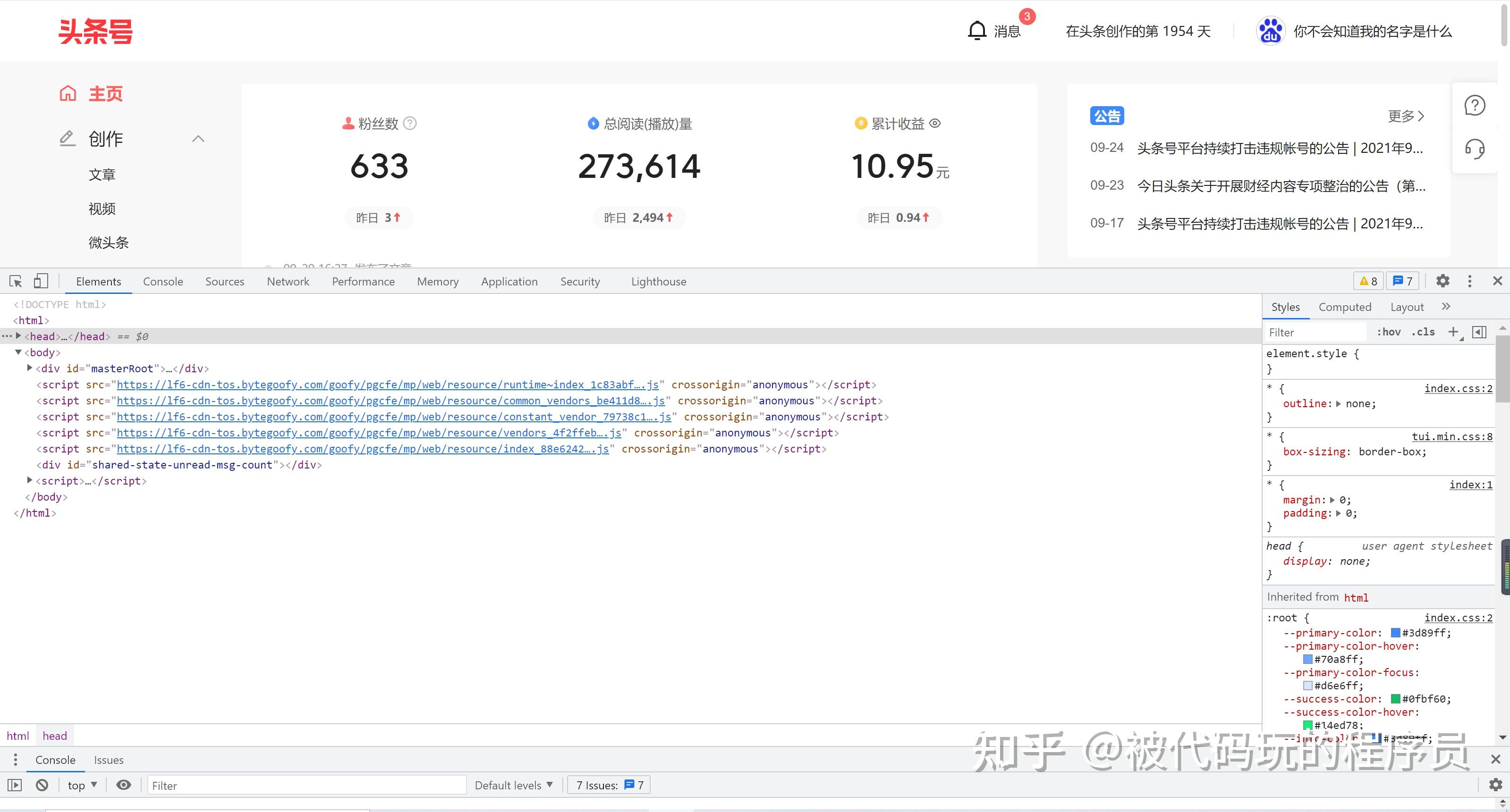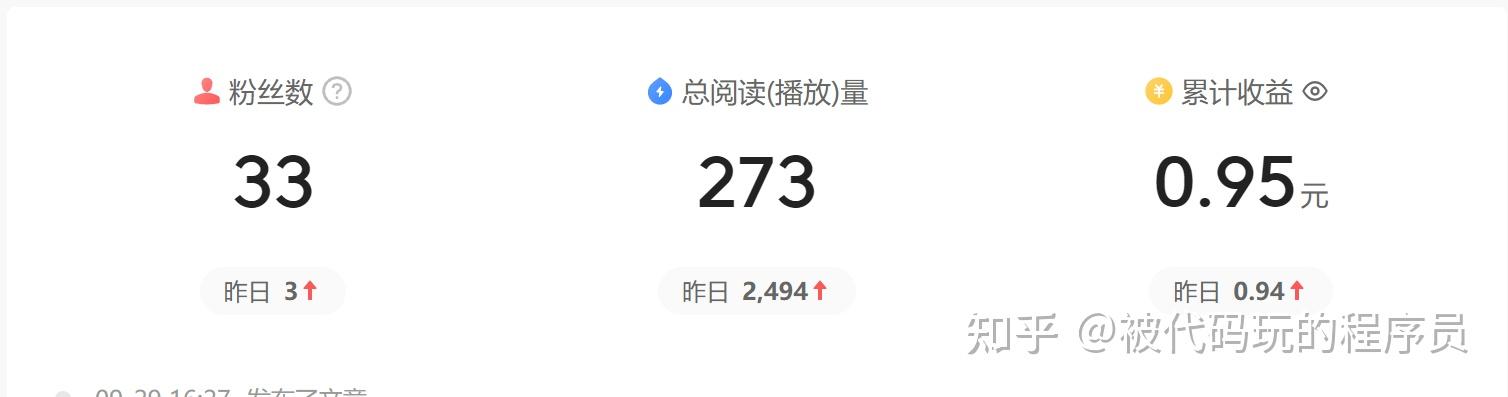看着知乎上面玩自媒体的动不动都是日入几百上千的,实在让人心动,于是,在今年9月24号重新开始发文,今天是第5天了,为了融入自媒体日入几百上千这个群体,通过自己的技术终于实现了收入破万。