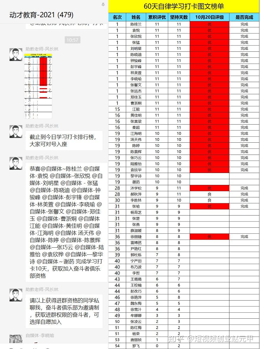 动才教育打卡学员汇总再比如:今天10月20日,自媒体讲视频的制作流程。