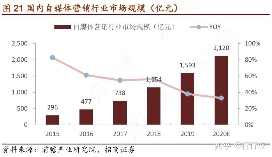近些年来,自媒体营销行业也在持续保持高速增长,2015到2019年复合增长率高达52.31%,2020年国内自媒体营销行业市场规模将达到2120亿元。高增长背后重要因素是大数据及云计算分析对于手机用户画像的精准分析。最典型的便是抖音,通过对用户更爱看的视频门类进行总结从而不断推送使用者感兴趣的视频,从而牢牢占据用户使用时长。同时,通过对用户进行分类,可以按用户属性进行广告展示,实现精准营销。