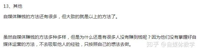 12、其他其实还有不少的方式,当然我们的自媒体定位建议:更好只做推荐,不做推销;帮助别人成功,自己才会赚钱;自己一个尽的写稿子,版权要求各种,未来发展方向不大,所以我们更多的是想给别人创造价值!利他则利己!