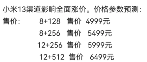 小米13渠道价格报价曝光
