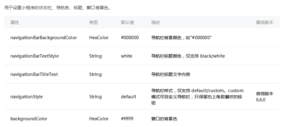 window「窗口表现」:用于指定小程序窗口的外观表现,比如上面提到的标题颜色、背景颜色等等