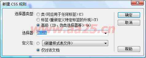 按照如图所示的创建方法,把两个div都创建出来,或手工写出代码。div创建完成后,开始创建css样式表,代码如下: