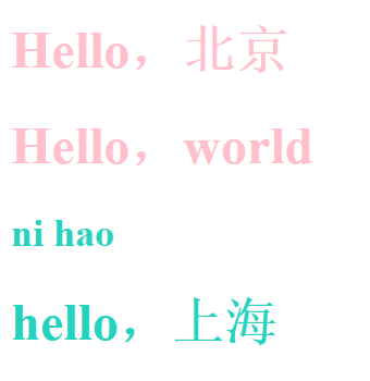 <h1 class="css2">hello,上海</h1>