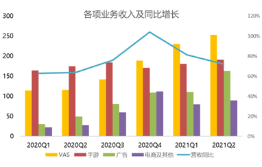 与低迷相比,哔哩哔哩增值服务(VAS)事业顺风顺水。这项工作主要包括付费比赛院、直播、比利比利漫画、猫耳FM等,从2020年Q4开始超越游戏业务,成为收入的主要来源。