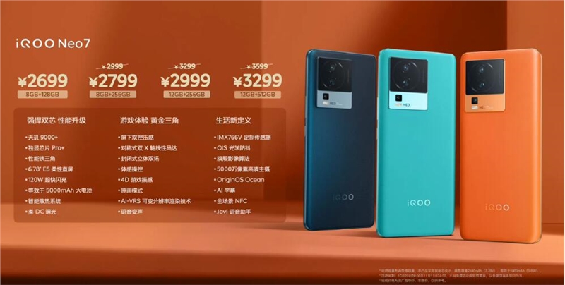 图像方面,iQOO Neo7拥有5000万个主摄像头,配备独家开发的IMX766V传感器、800万广角200万微距3摄、前置1600万摄像头。