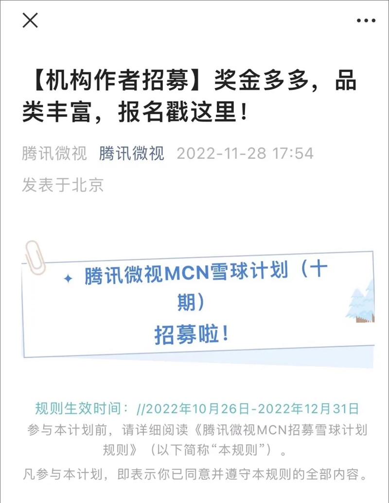 不过最近官方已经发现了计划的BUG,推出了新的《微信视频号MCN招募计划规则》,11月22日开始实施。