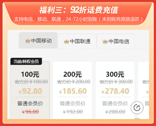 普通用户可以享受官方直充产品价格6-80%的折扣购买,特权会员团长可以享受更低的折扣!