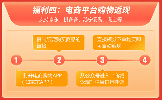 外卖红包每天领、视频会员4-60%折扣、商场购物返回等,涵盖生活生活,吃喝玩乐!